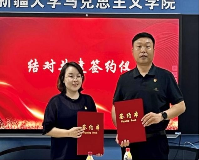 党委办公室(大学办公室)党支部与马克思主义学院行政党支部开展结对共建活动,并签署共建协议。党支部书记廖芳讲授主题党课;“石榴花”宣讲团成员苏比·依力哈木同学以“今朝共育石榴籽,来日‘新’赏团结花”为主题进行宣讲,结对师生还一起参观新疆大学铸牢中华民族共同体意识研究基地,共建活动成效显著。