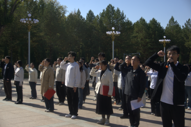 计财处党支部联合结对共建单位商学院、历史学院赴乌鲁木齐市烈士陵园开展缅怀革命先烈活动,全体党员前往烈士事迹陈列馆开展参观学习,重温革命先辈为人民解放事业浴血奋战的光辉历程;一同参加纪念仪式,面向人民英雄纪念碑集体重温入党誓词,并敬献鲜花表达哀思,赓续红色血脉。